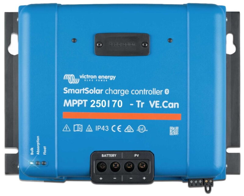 Robustný a rýchly MPPT regulátor s VE.Can pre náročné podmienky s napätím panelov až 250 V , nabíjací prúd 70 A. Batéria 12/24/48 V , FV max. 1000/2000/4000 Wp . Vstavané Bluetooth a konektor pre zásuvný displej.